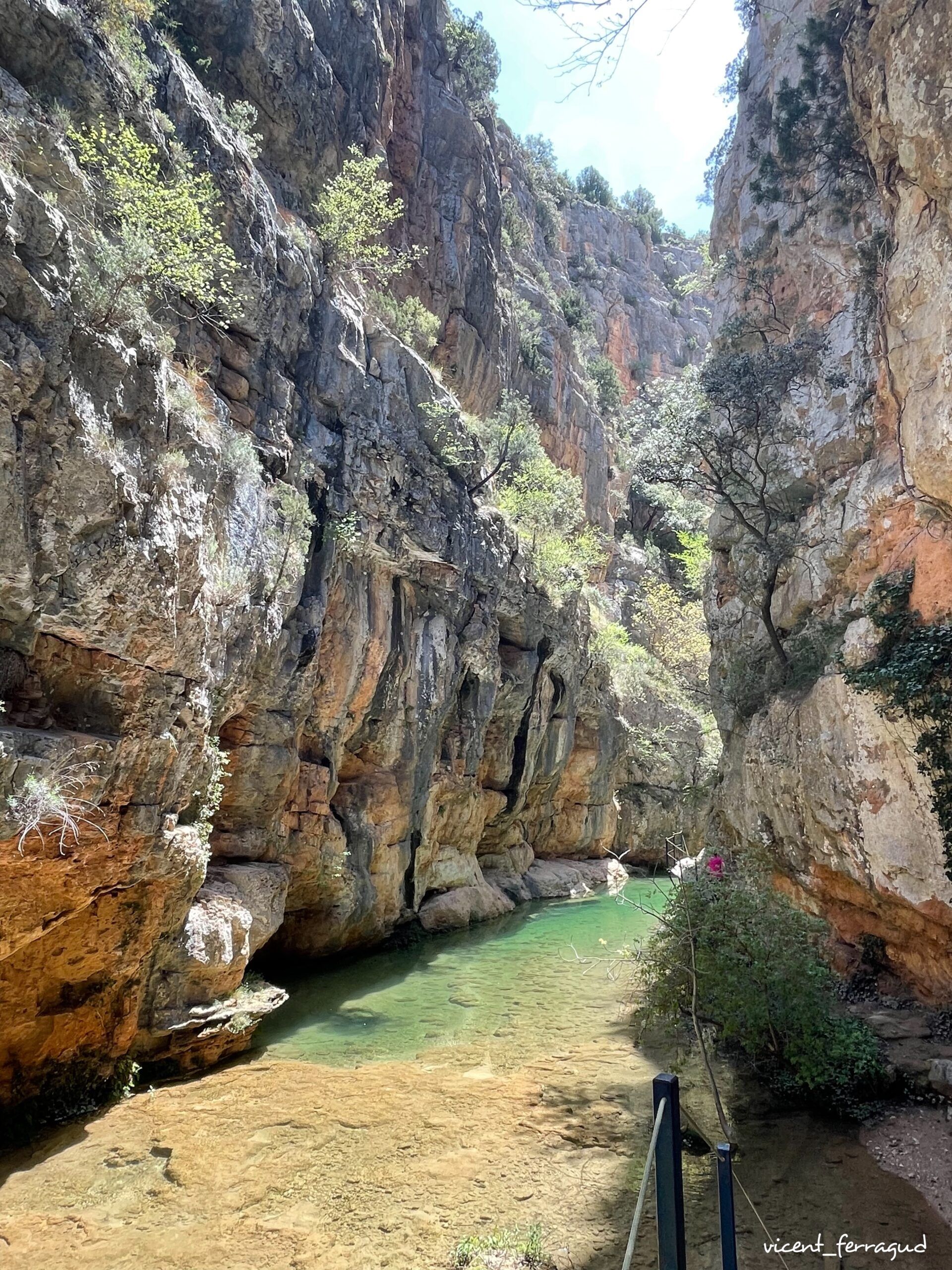 Una vez pasadas las pasarelas la ruta va ascendiendo hasta la parte alta del cañón (algo dura) para luego descender de nuevo al cauce del rio Ebrón donde encontraremos ya llegando al pueblo de Tormón la espectacular cascada de Calicanto.